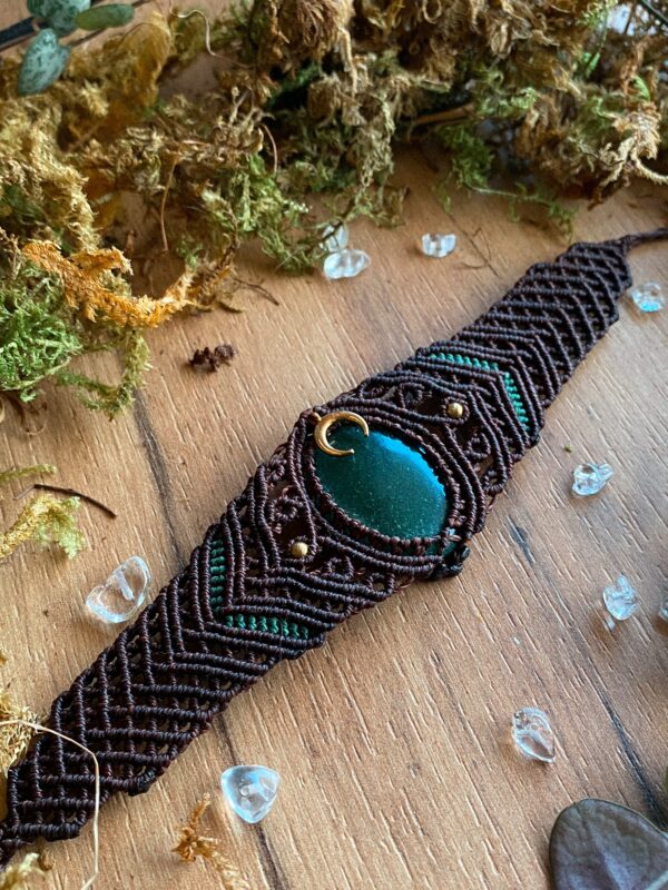 Bracelet manchette avec sa pierre d’Aventurine Mica. Il est réglable par un nœud coulissant pour s’adapter à tous.