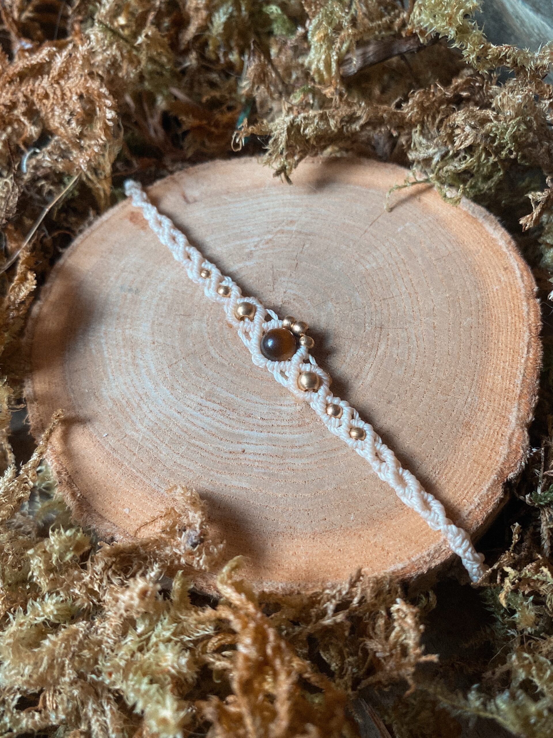 Bracelets en macramé réglables par un noeud coulissant. Chaque bracelet est unique et porte sa propre pierre.